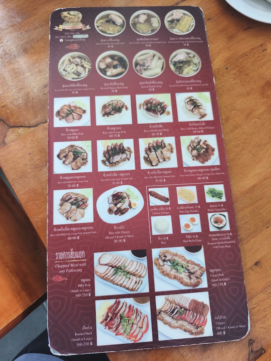 The standout menu items reflect the unique heritage of the Chinese ethnic community from Southern Thailand. The crispy pork, while delightfully flavorful, may vary slightly in texture, offering a pleasant contrast to the tender, succulent roasted duck. These dishes are essential stops for food lovers en route to or within Chiang Mai.